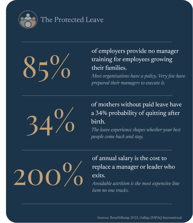 Organizations have invested in parental leave policy but never built a manager standard for how to execute it, so every manager handles it differently based on their own experience, instincts, and whatever they happen to know in that moment.